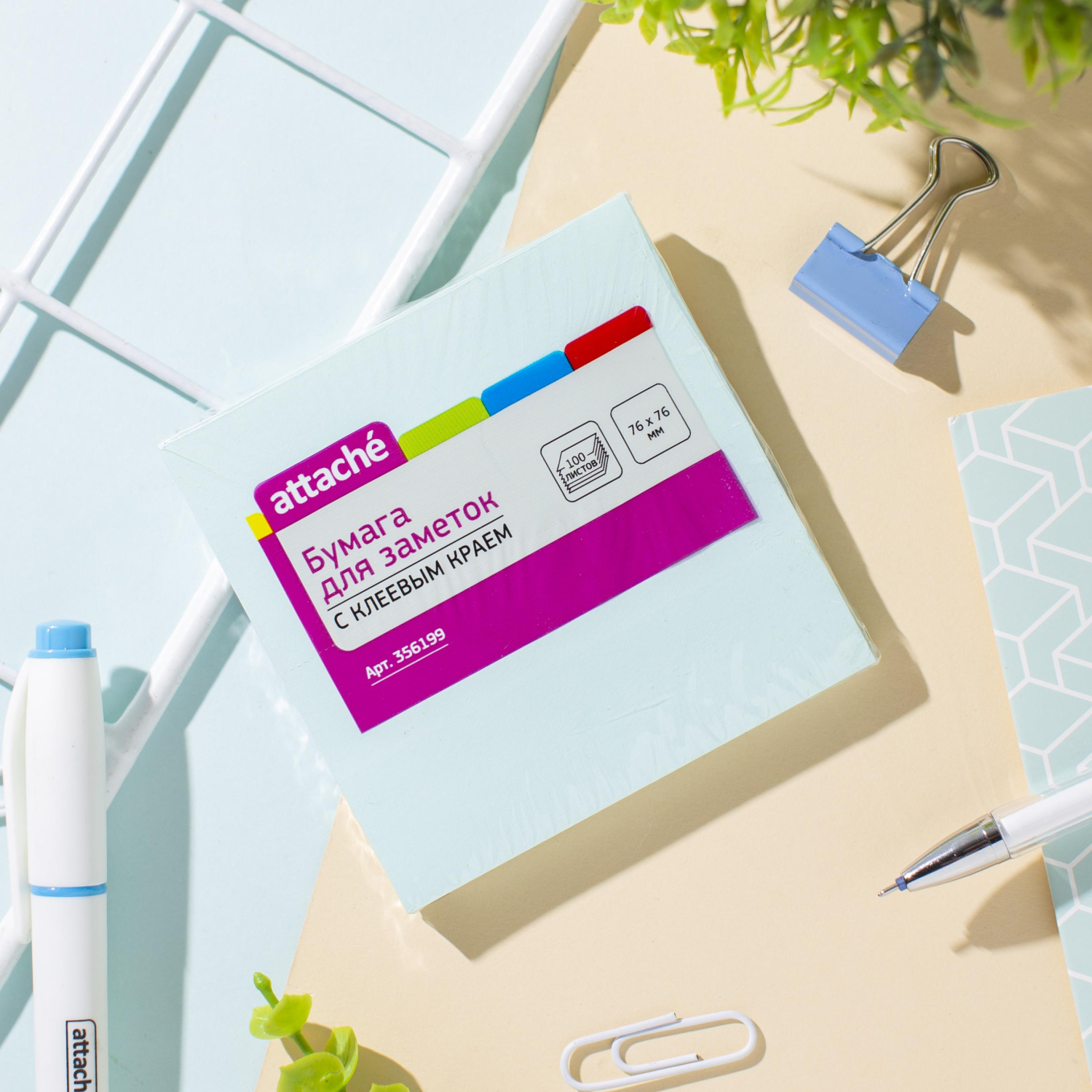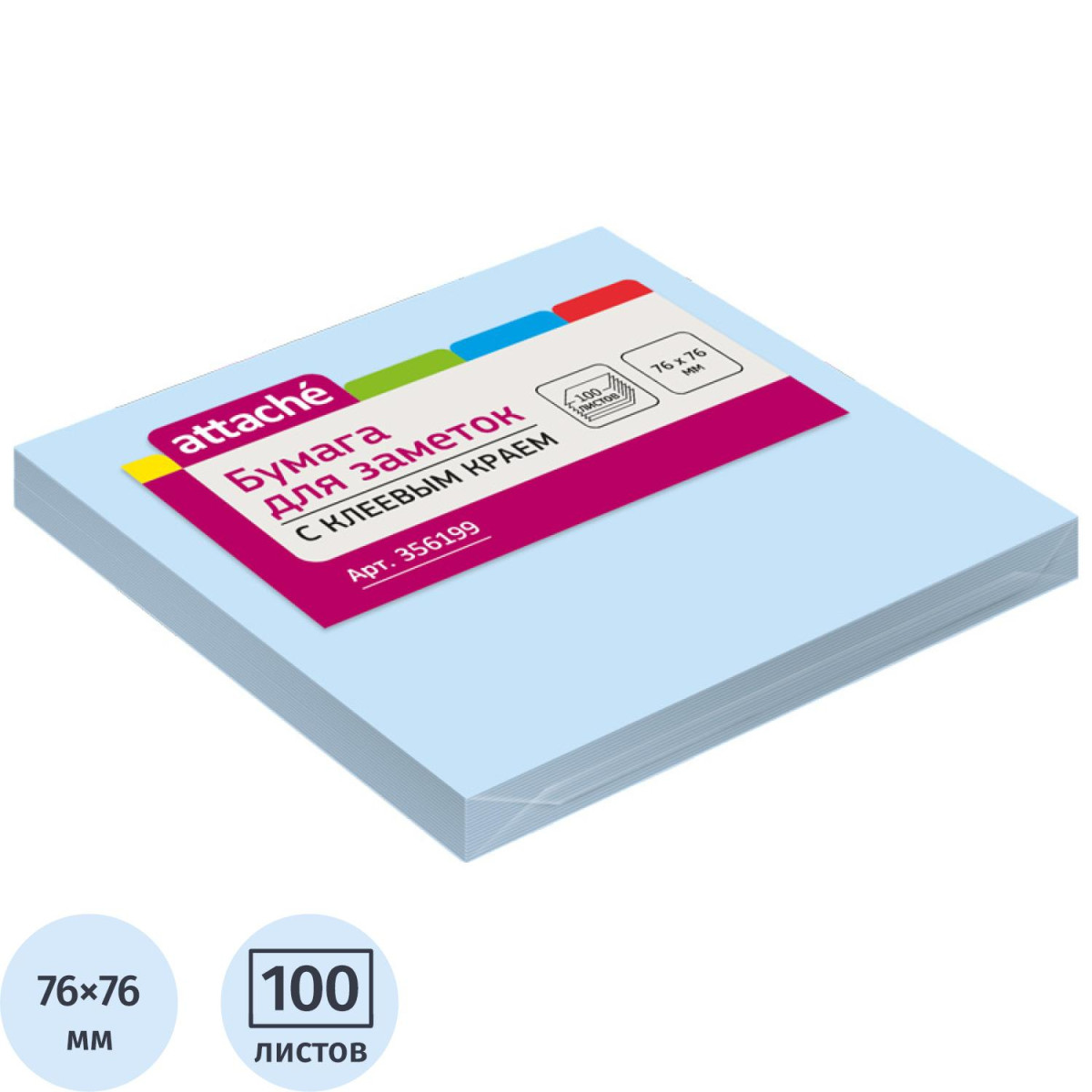 Стикеры ATTACHE с клеев.краем 76х76 голубой 100л отзывы